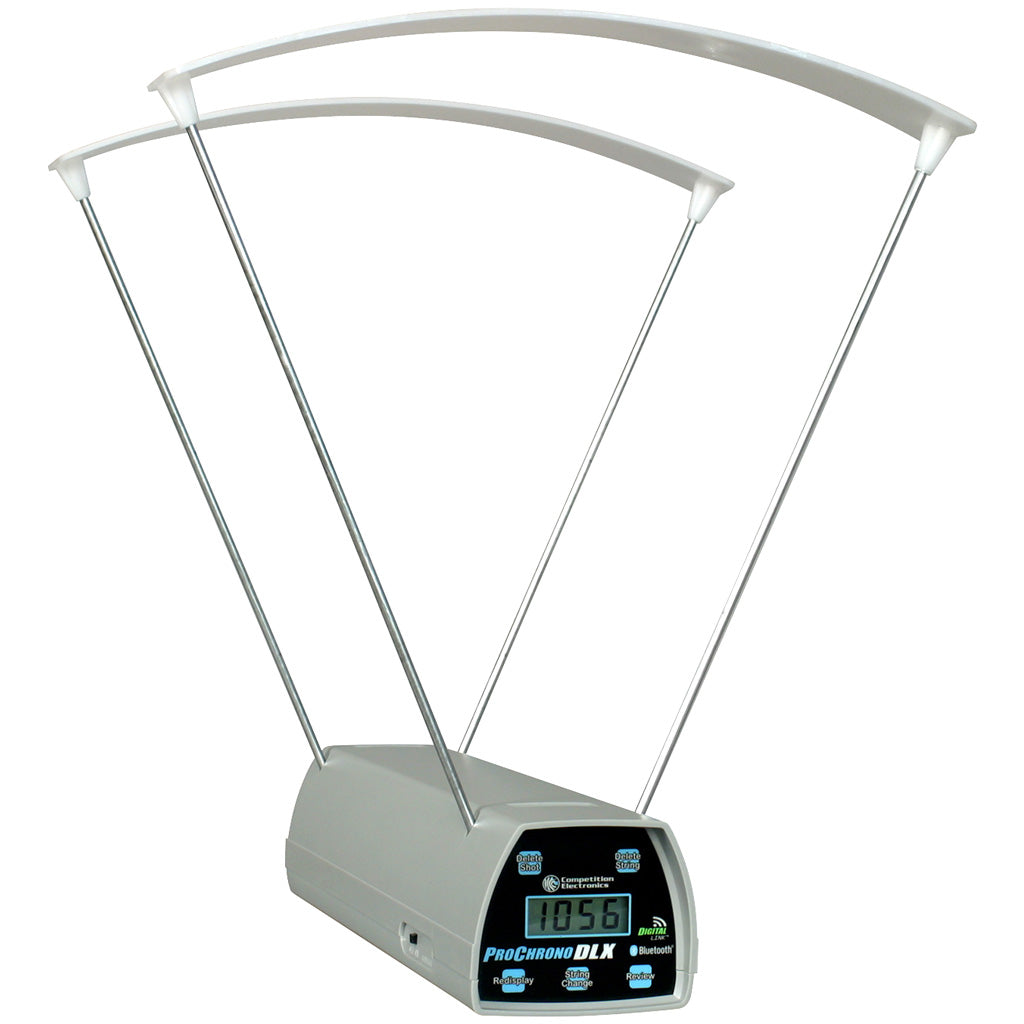 The Competition Electronics ProChrono DLX Chronograph represents the next generation of reliable performance, ideal for measuring the speed of projectiles from firearms, archery equipment, airguns, and more. Designed for outdoor use, it features on-board Bluetooth connectivity, compatible with free apps for various platforms, and an advanced sensing system for use under a wide range of lighting conditions. With a built-in memory system capable of storing up to 99 shots in 9 strings, this chronograph ensures precise and accurate readings with a faster internal shot clock. Engineered with over 30 years of expertise, it offers a durable design and includes a two-year warranty for peace of mind.