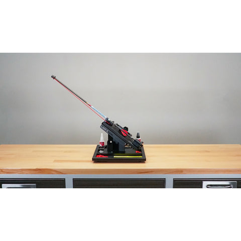 Features:Hold all fletching tools in one place; Angled glue bottle holder; Solid steel construction; Equipped with rubber feet