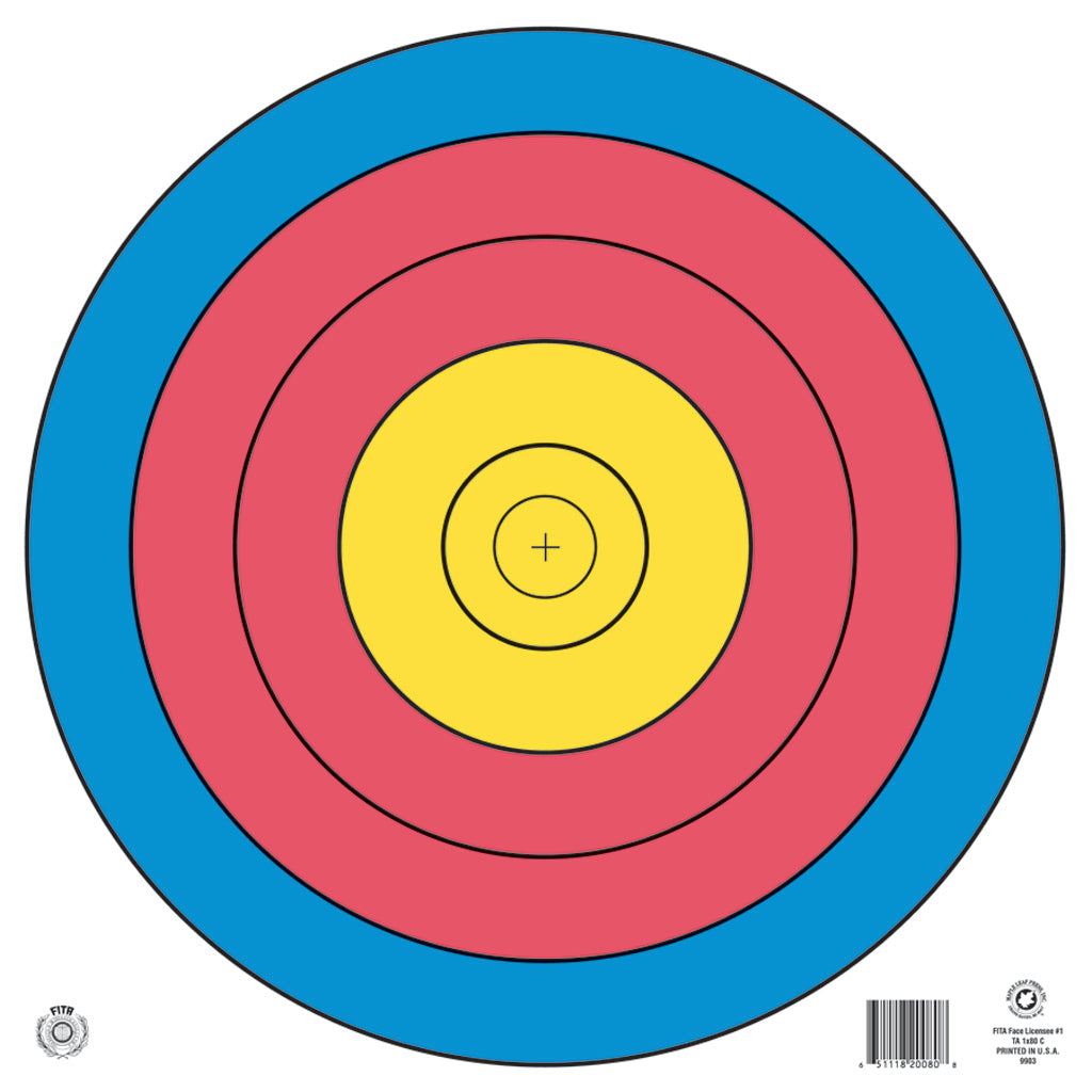 Offical World Archery target face.10 through 6 scoring rings of the 80 cm target face. Printed on waterproof material. Dimensions: 16.5"x16.5".