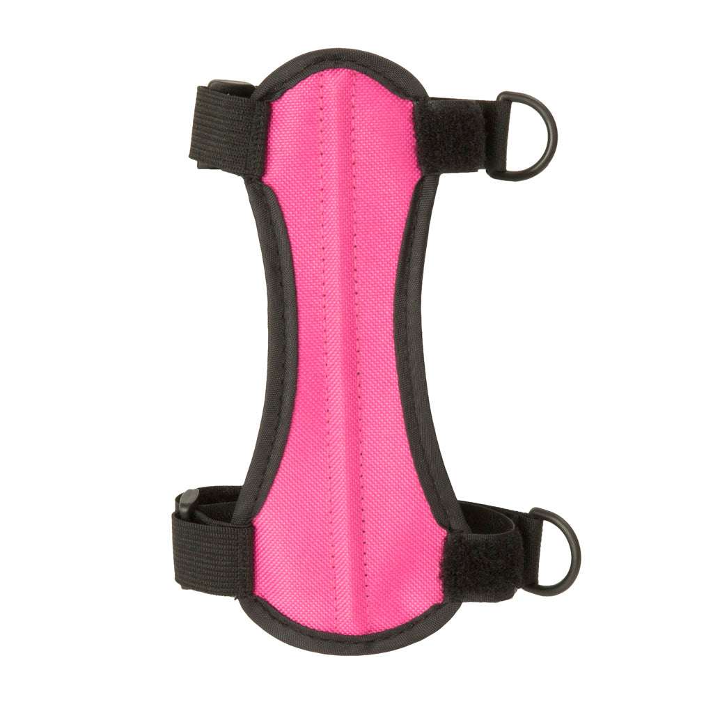 Features:Nylon arm guard with quick-adjust straps;Accomodates both youth and adult archers;Straps do not pull through;Available in colors: Black, Blue, Pink, Red