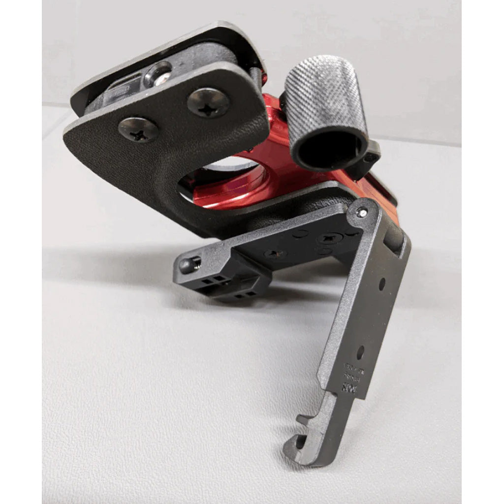 Features:Secure and accessible handheld release holster;Designed for UltraView UV Button and The Hinge 2 (medium frame);Compatible with 3-finger and 4-finger models;Adjustable retention for a custom fit;Simple seat-and-lock mechanism;Fine-tune retention with 1/8? Allen wrench;Mounts to belts, bino harnesses, hunting packs, hip quivers, and Molle webbing;Left- or right-hand draw compatibility;Vertical or horizontal positioning for maximum convenience;Durable black finish for rugged performance