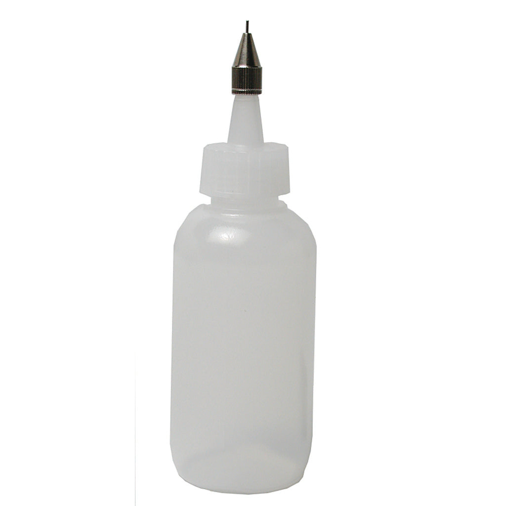 Bottle holds any standard glue while tip drops a bead of glue, used for fletching arrows.