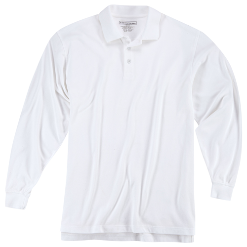 Engineered for superior wearability and versatility across a wide spectrum of job environments, the Long Sleeve Utility Polo provides the same crisp, clean appearance as our traditional Professional Polo, while integrated side vents provide greatly increased air flow to keep you cool and collected. Integrated side vents for increased breathability, No-roll collar and hemmed sleeve cuffs for a clean appearance, Shrink, fade, and wrinkle resistant construction, 60% / 40% cotton/polyester pique knit blend, Dual pen pockets on left sleeve, Extra tough melamine buttons, Three button placket, 5.11 logo embroidered at left waist hem, Strong bartacking at key stress points, Imported
