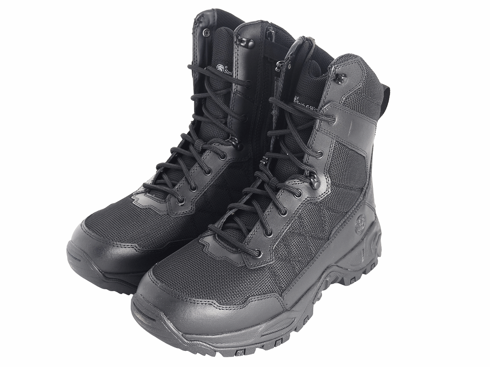 Discover durability and convenience with the Smith & Wesson Scout 8"" Tactical Boots, designed for the demanding needs of law enforcement and security professionals. Crafted with a robust nylon upper and a non-polishable toe, these boots are perfect for those who need reliable footwear that stands up to rigorous conditions.