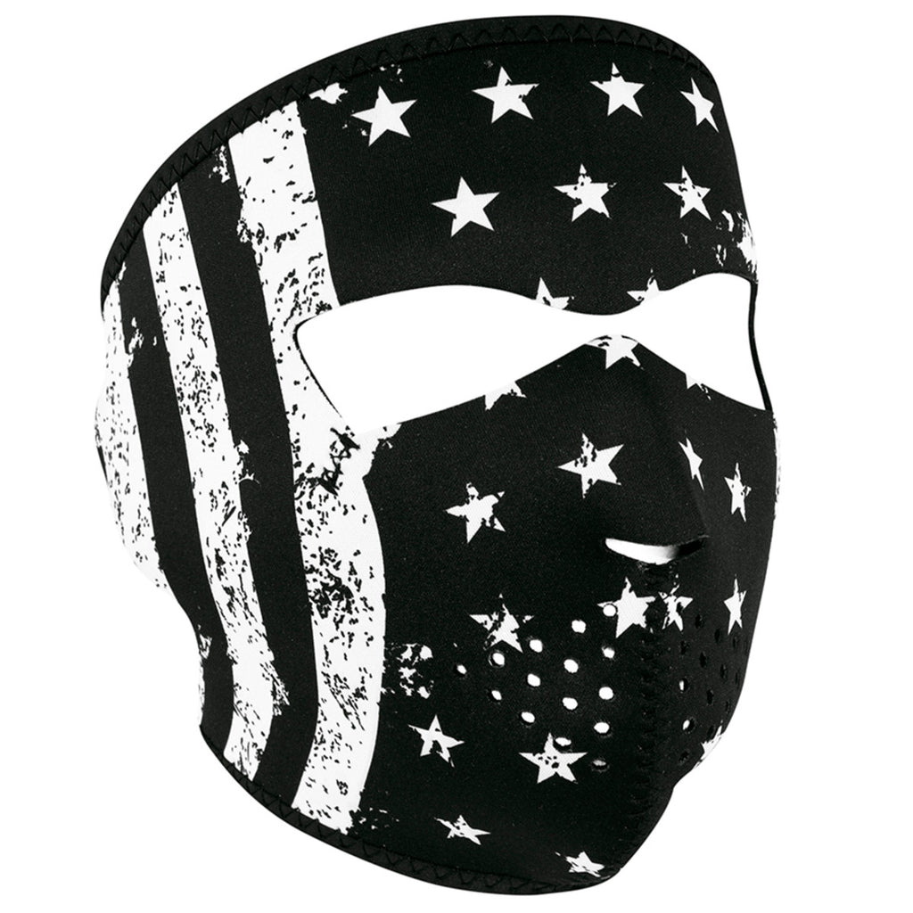 The ZAN Headgear Neoprene Face Mask features full coverage of the face and ears with stretchy, warm and water resistant 2mm thick neoprene. Like most ZAN Headgear face masks it has a black stretch nylon trim for added durability and clean finish. A hook and loop closure allows for adjustability and ensures great fit, and can even be lengthened with our Neoprene Extension Piece (sold separately). Provides coverage of the ears, nose and cheeks from the elements. Can be used with or without a helmet. One size fits most. Black/White Vintage Flag design, reversible to Black. Material: 70% Neoprene, 30% Polyester. U.S. Patented design.