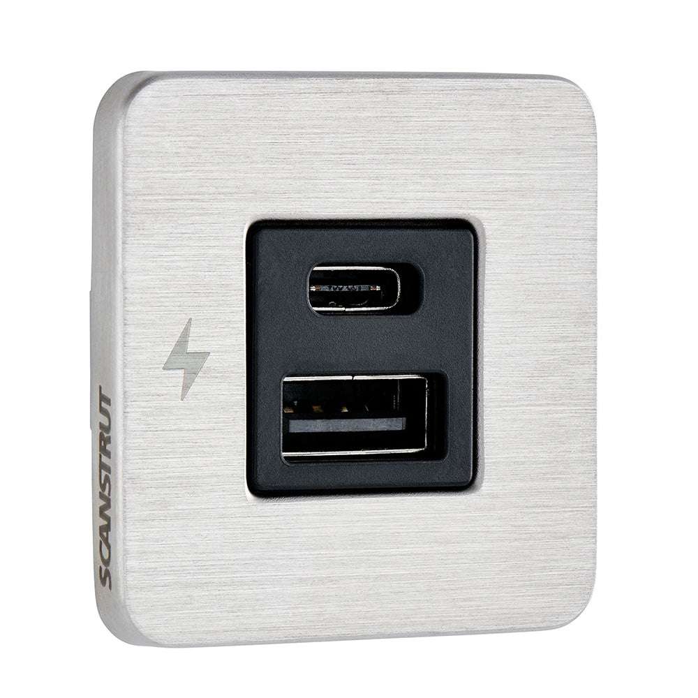 TILE USB-A/USB-C Interior Charging Socket - 12/24V - Stainless Steel Bezel