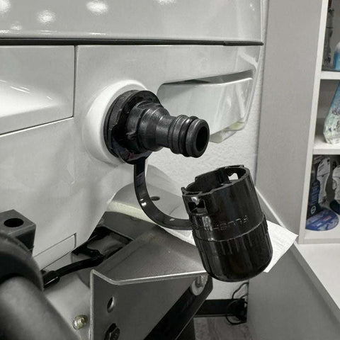 - Thread in your new Flushmaster Flush Port Quick Connect.