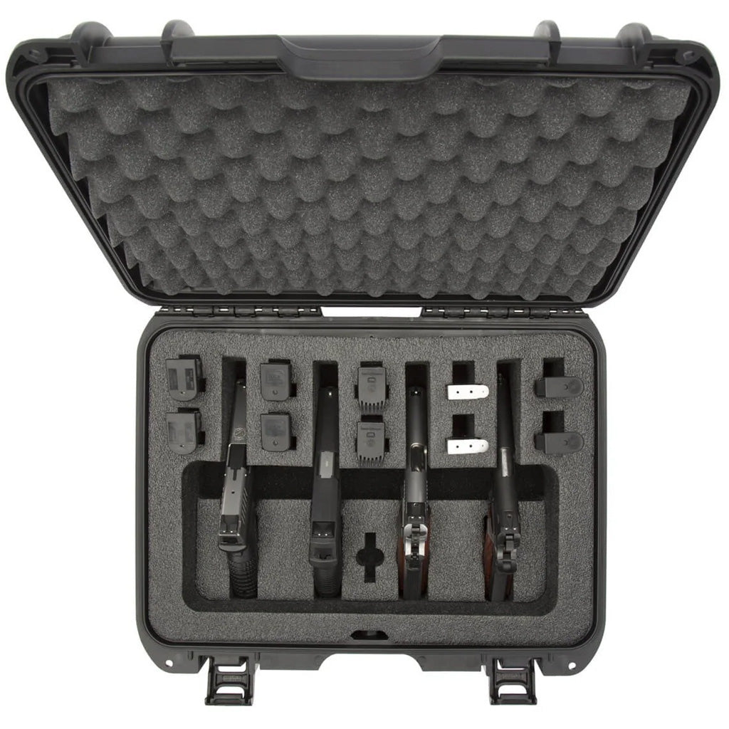 The NANUK 925 4-Up Pistol Case offers unmatched protection and storage for up to four pistols and ten magazines, making it the ultimate choice for firearm enthusiasts. Constructed from durable NK-7 resin, this case is waterproof, dustproof, and impact-resistant. Its high-quality closed-cell PEF foam ensures a secure fit for your handguns and accessories, while the eggshell foam lid provides additional cushioning. Featuring a PowerClaw latching system, ergonomic handle, and reinforced locking eyelets, the NANUK 925 guarantees safety and portability. Perfect for travel or storage, this case is backed by a lifetime warranty for peace of mind.