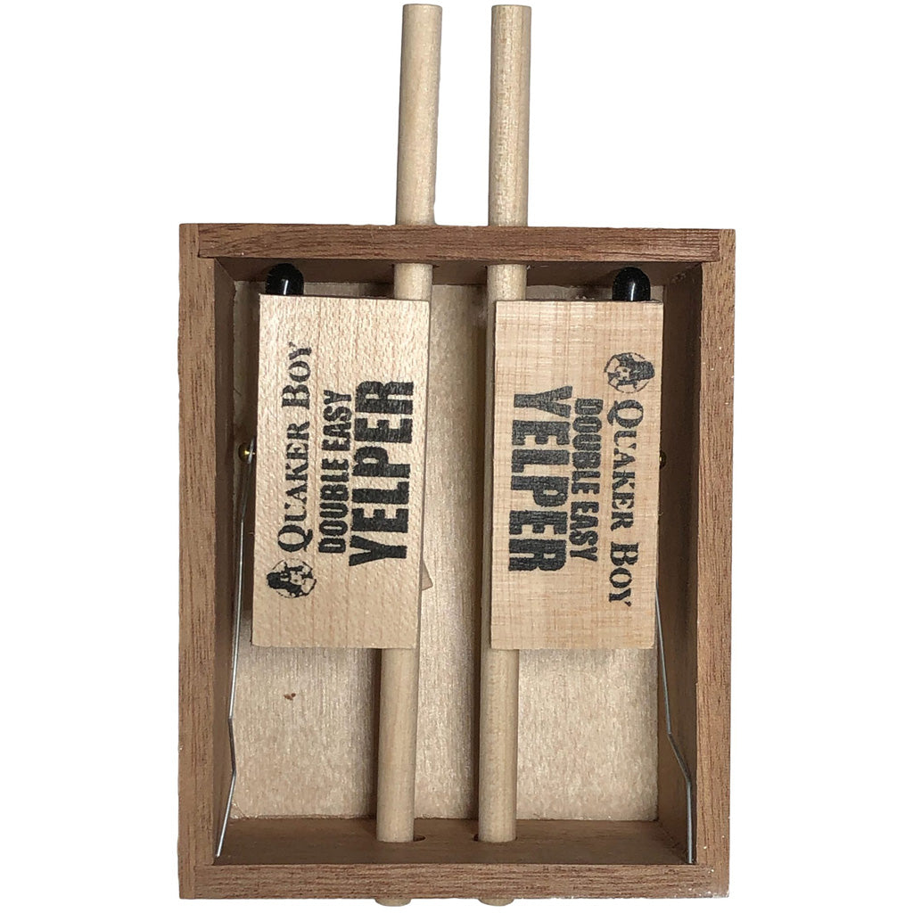 The Easy Yelper is Quaker Boy's most popular friction call. One handed, simple operation. A favorite of experts and beginners alike that produces all turkey talk. Crafted and finished of Maple and Mahogany woods. Requires very little maintenance.