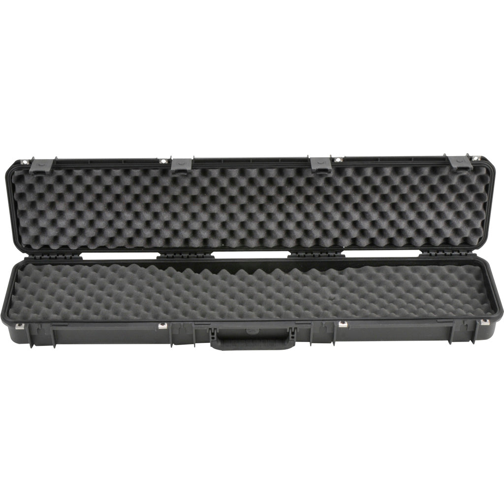 Injection molded waterproof utility case is made of ultra high-strength polypropylene copolymer resin. Convoluted and EPS foam interior for cushioned protection. Resistant to corrosion and impact damage, trigger release latch system, comfortable snap-down rubber over-molded cushion grip handle. Four reinforced stainless steel padlock locations. Lifetime warrenty. Interior diamenisions 49 in L X 9 in W X 5 in D.