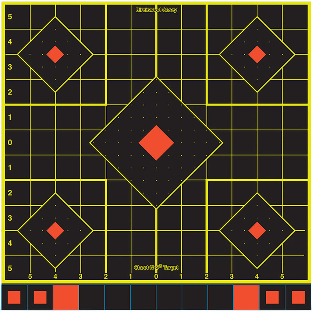 Shoot-N-C Targets are a reactive target that create a sharp, highly visible, chartreuse ring around each bullet hole upon impact reducing the need to walk to the target. Each target have an adhesive backing and pasters for easy mounting and repair.