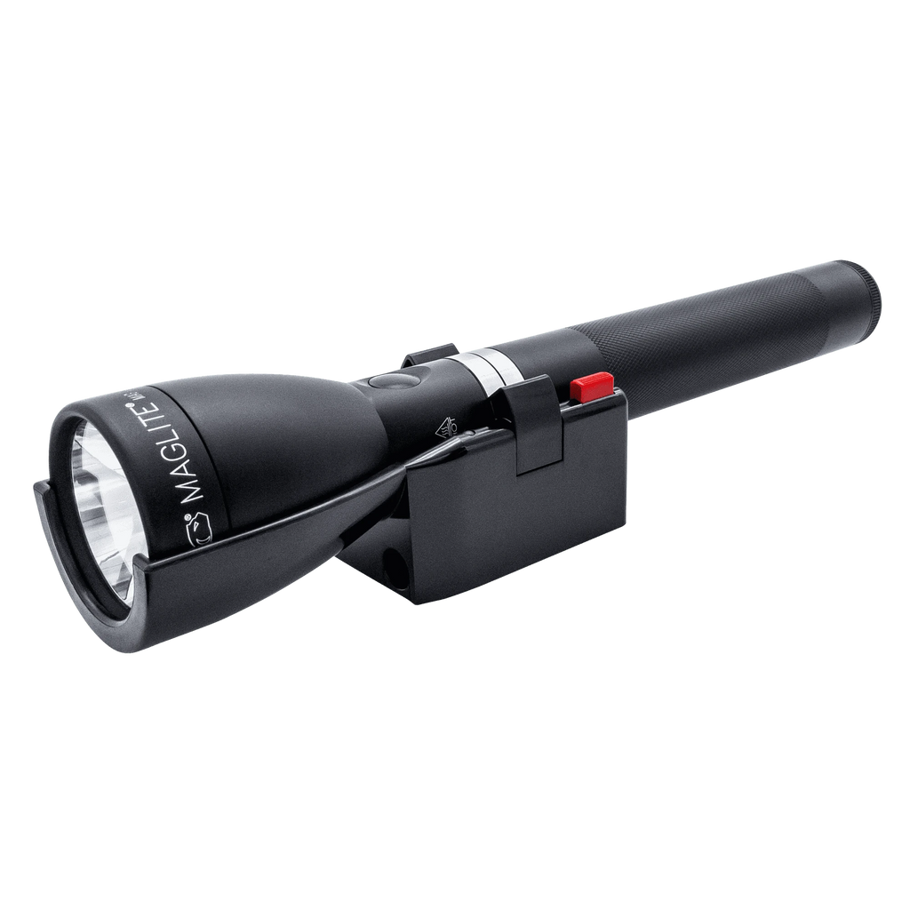 The ML150LR offers eco, low, and high power settings as well as a strobe mode, with momentary and constant-on operation, all controlled from a side-mounted push-button switch. The settings are further organized into four function sets: General (high, low, eco), Outdoor (high, low, strobe), Law Enforcement (momentary, high, eco) and Tactical (momentary, high, strobe). Runtimes range from 3.3 hours on high to 79 hours on Eco. Spot-to-flood focus is adjusted with the classic Maglite quarter-turn head-twist mechanism. The light's three lithium-iron phosphate batteries recharge in about 2.5 hours and are rated for up to 1000 charge/discharge cycles. Measuring 10.7'' long and weighing just under a pound, the light features an anodized aluminum housing and is IPX4-rated water resistant. The charging cradle has a status indicator light and an ergonomic quick release button and is designed to grip the light securely, even upside down or in a moving vehicle on rough road.