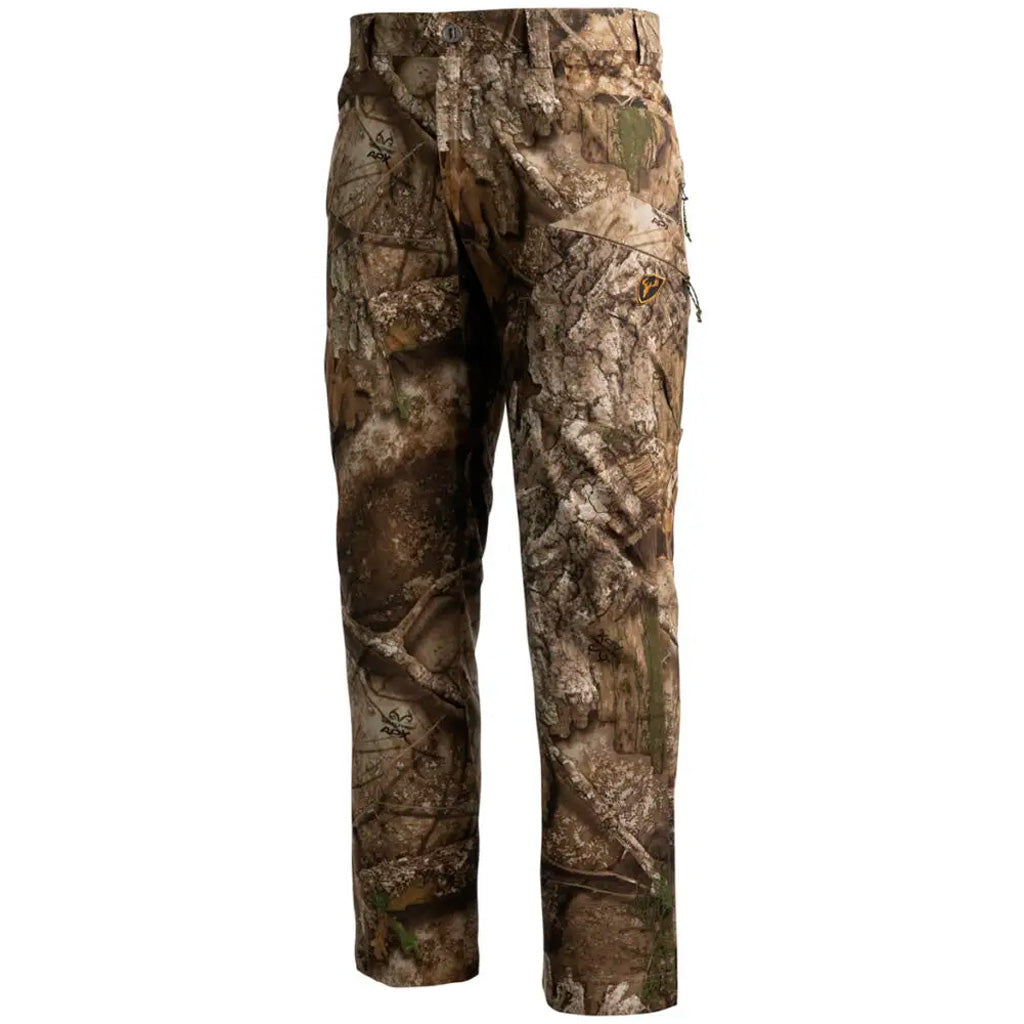 The Shield Reliant Pant is a lightweight, durable option designed for early to mid-season hunts. Constructed with a poly/spandex double-weave material, it offers exceptional stretch and active cooling, ensuring mobility and comfort in the field. Enhanced with S3 antimicrobial and moisture-wicking treatments, these pants manage odor and moisture effectively for extended wear. With zip hip vents for ventilation, six practical pockets for storage, and articulated knees for improved mobility, the Reliant Pant is built to handle any hunting scenario. The rear waistband elastic ensures a custom fit, making these pants an essential addition to your hunting gear.