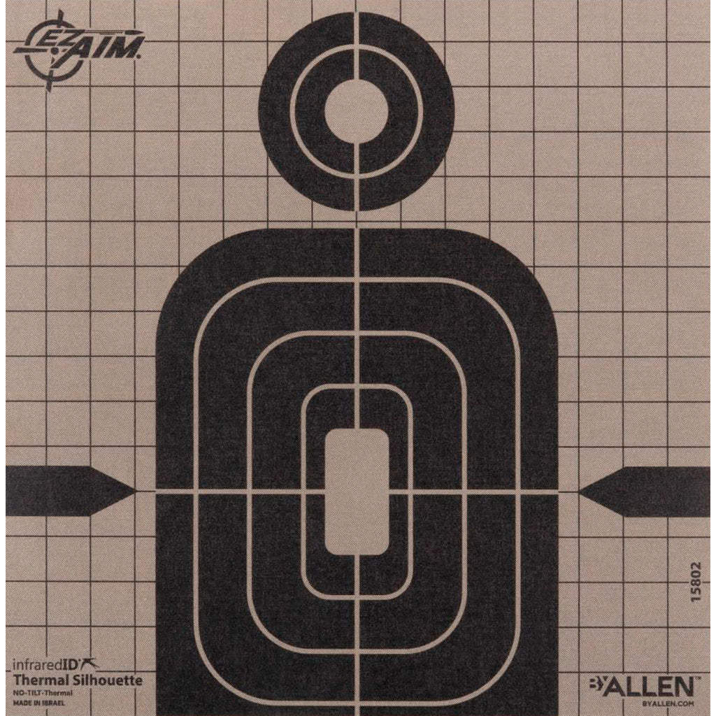 The EZ Aim Adhesive Thermal Silhouette Target by Allen Company is the ideal tool for precise sight-in and calibration of thermal imaging scopes. This 8-inch x 8-inch silhouette target features a 0.5-inch gridline design, combined with patented Thermal ID technology, to provide distinct heat signatures visible through thermal scopes, even in daylight. Its durable adhesive backing allows for easy application on a target backer, making it a convenient choice for practice and fine-tuning your night vision optics. With a performance range of -20F to 110F, this target is perfect for ensuring accurate results in any environment.