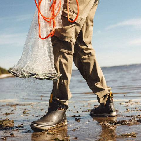 Features:6-inch waterproof slip-on rubber boot;Hand-laid natural rubber over insulating neoprene for durability;Air-Circ liner system keeps feet cool and dry;Alpha Fit sizing with half sizes and multiple widths for a custom fit;Foredeck slip-resistant outsole for superior traction in wet environments;Kick-Off Heel Plate for easy hands-free removal;Fiberglass shank for added support;Lightweight design at 2.6 lbs per pair;Comfort zone: mild climates (30F ? 80F)