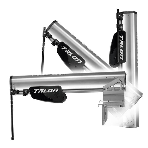 Easy-tilt action accommodates for low clearance areas and boat storage. Marine-grade, anodized aluminum construction for strength and durability. Adjustable deck support provides stability while tilting. Requires use of a Talon Adapter Bracket - not intended for use with Talon direct-mounted to hull of boat. Designed for temporary clearance - not intended for transport (on water or trailering). Stainless steel hardware and Talon crutch support included. Compatible with all three-stage, 8 ft., 10 ft., and 12 ft. Talon shallow water anchors.